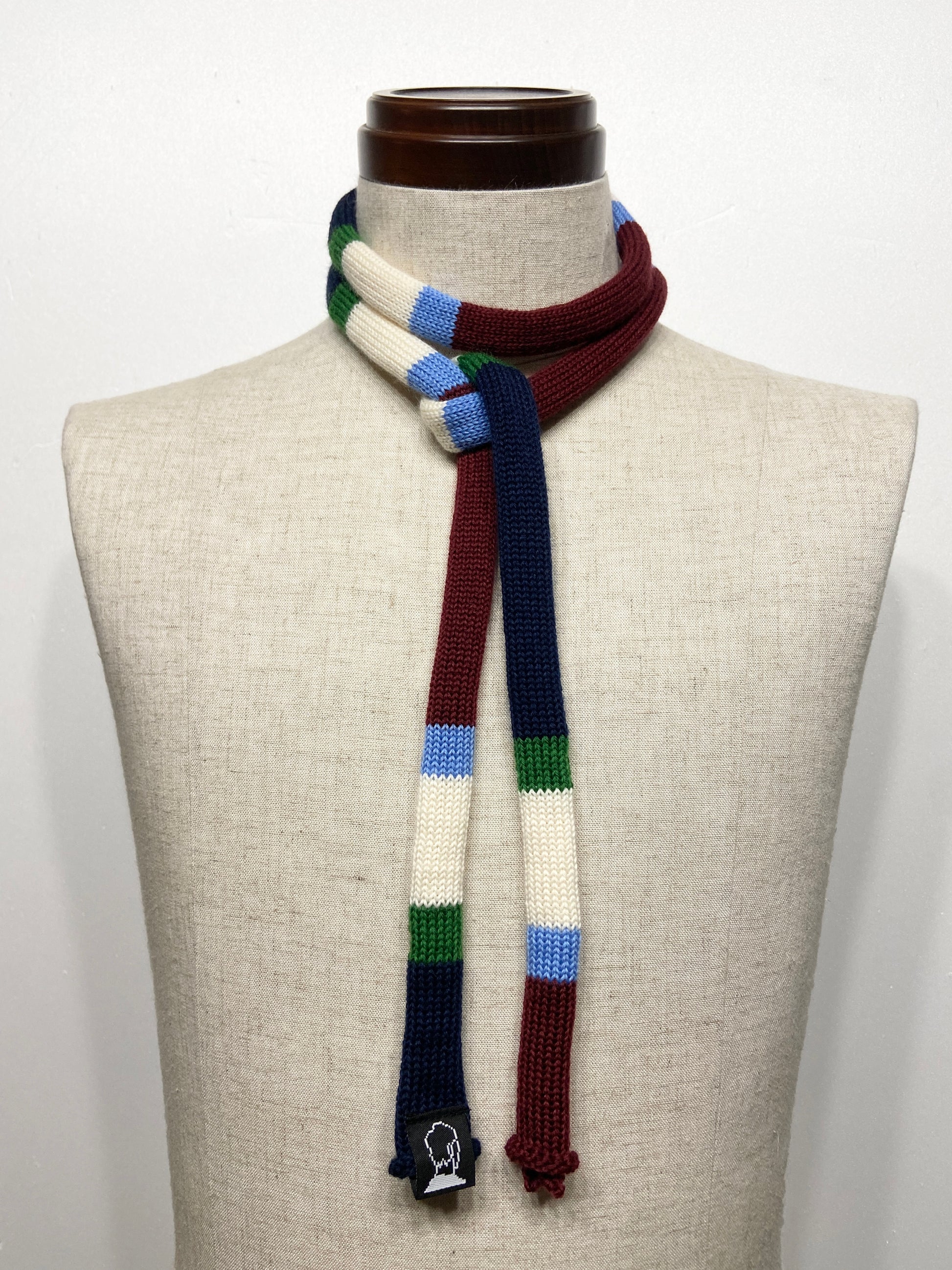太さ約2cmのマルチボーダータイ。長さ約160cm。ウール素材。全て柄と色の組み合わせが異なるアイテムです。1本でスタイリングしてタイの様に使用していただけます。2本組み合わせてマフラーのような使い方もおすすめです。