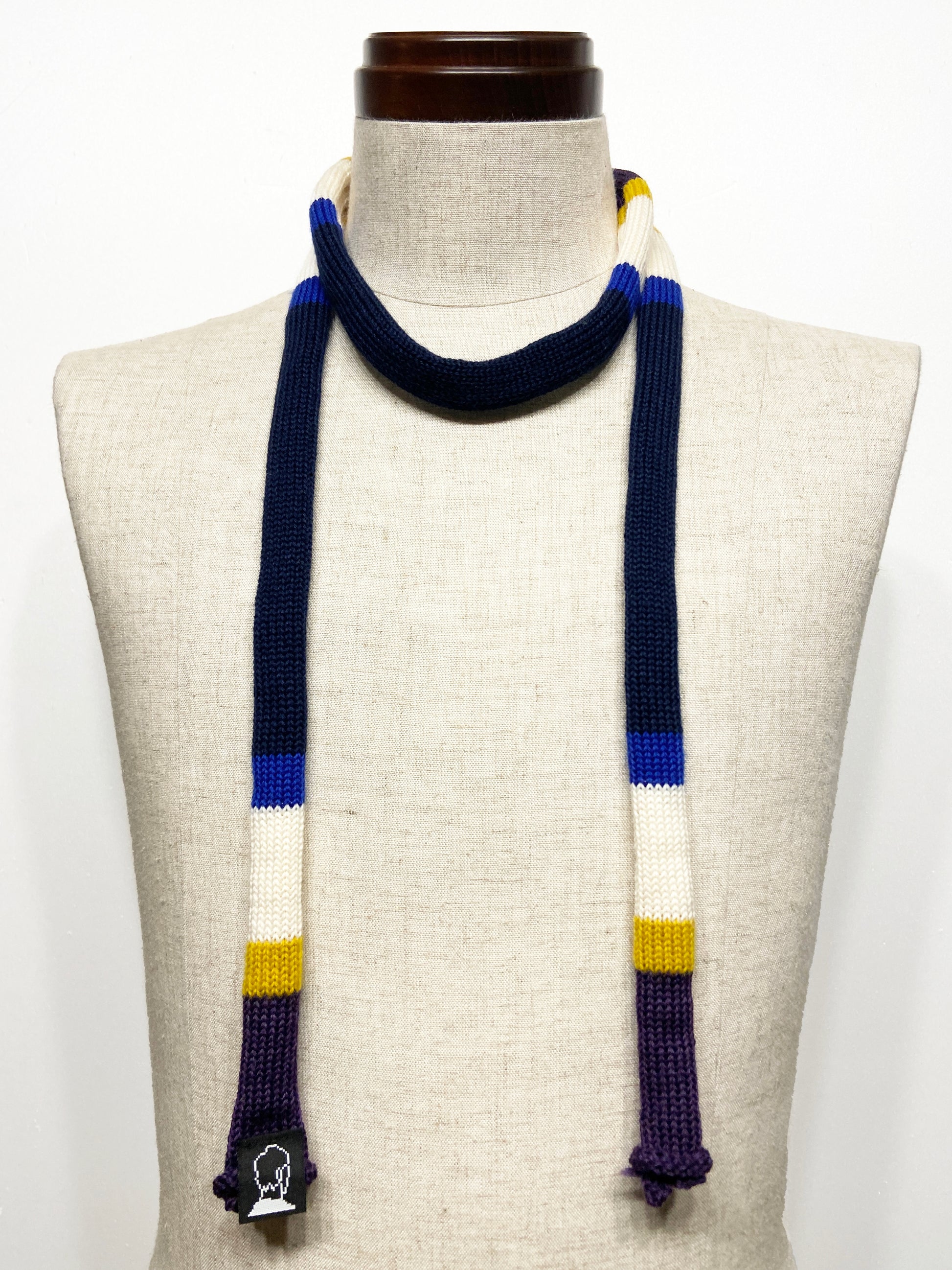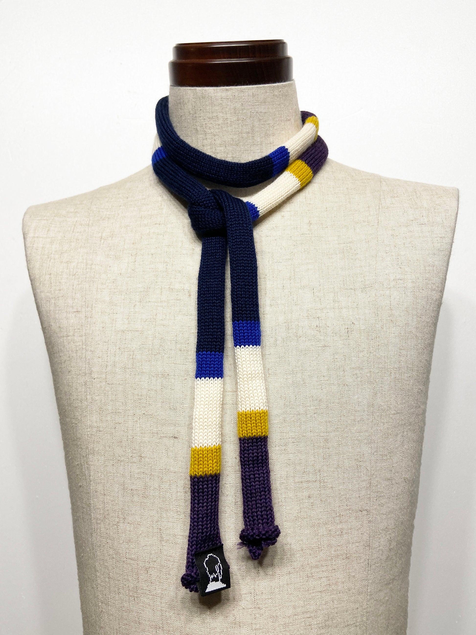 太さ約2cmのマルチボーダータイ。長さ約160cm。ウール素材。全て柄と色の組み合わせが異なるアイテムです。1本でスタイリングしてタイの様に使用していただけます。2本組み合わせてマフラーのような使い方もおすすめです。