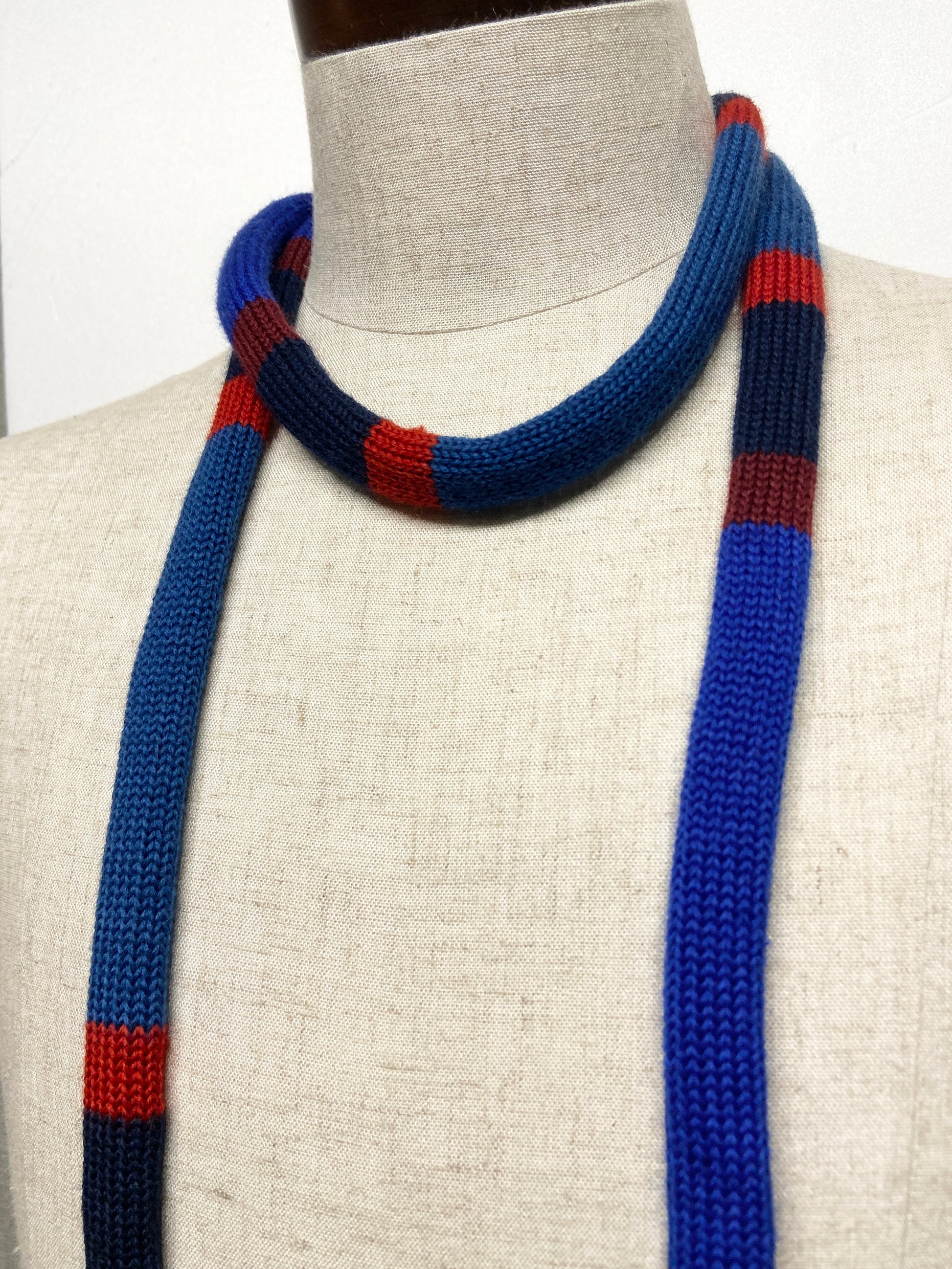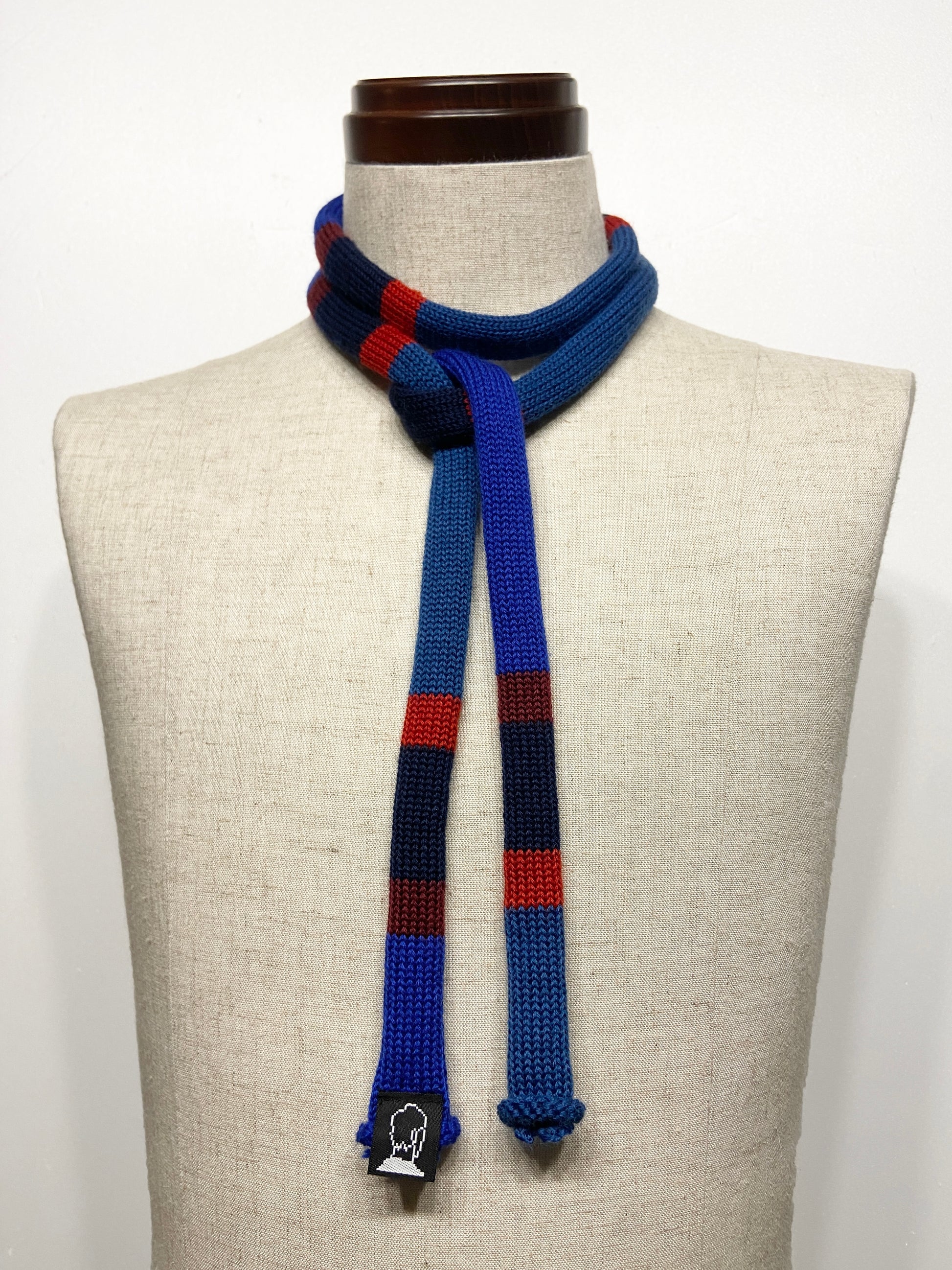 太さ約2cmのマルチボーダータイ。長さ約160cm。ウール素材。全て柄と色の組み合わせが異なるアイテムです。1本でスタイリングしてタイの様に使用していただけます。2本組み合わせてマフラーのような使い方もおすすめです。