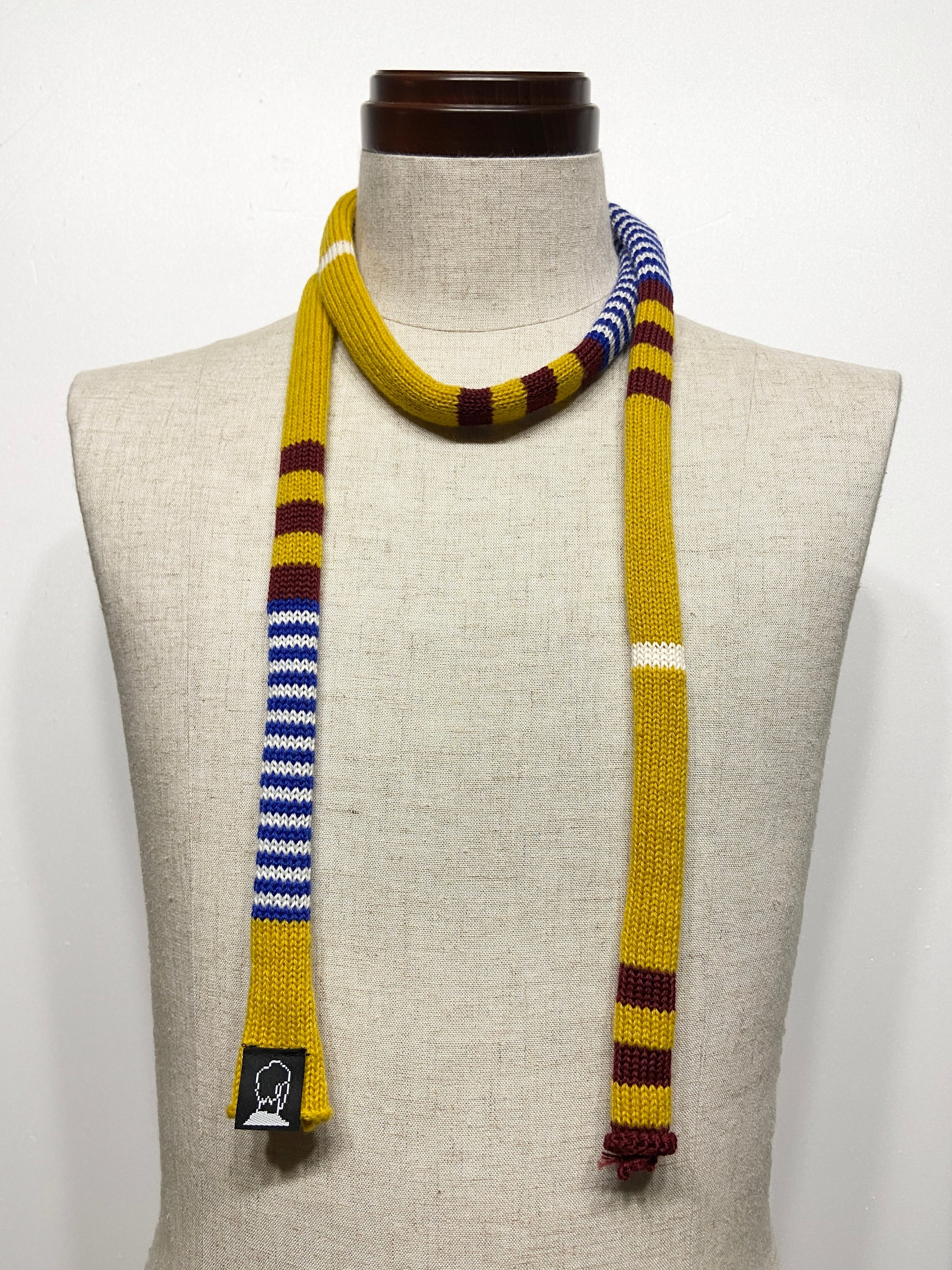 太さ約2cmのマルチボーダータイ。長さ約160cm。ウール素材。全て柄と色の組み合わせが異なるアイテムです。1本でスタイリングしてタイの様に使用していただけます。2本組み合わせてマフラーのような使い方もおすすめです。